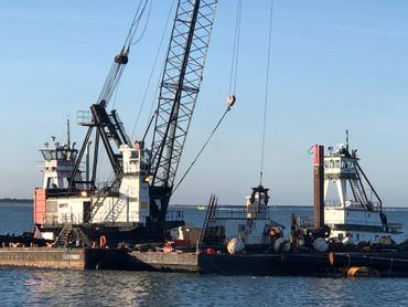 The DB Beaver is a 100 Ton Pedestal Mounted Derrick Crane with a 165 foot boom. It can be spudded or anchored out for jobs, and is operated by a NCCCO Certified operator.